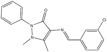 - Synonyms: (E)-4-((3-chlorobenzylidene)amino)-1,5-dimethyl-2-phenyl-1H-pyrazol-3(2H)-one 4-((3-CHLORO-BENZYLIDENE)-AMINO)-1,5-DIMETHYL-2-PHENYL-1,2-DIHYDRO-PYRAZOL-3-ONE