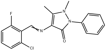 - Synonyms: (E)-4-((2-chloro-6-fluorobenzylidene)amino)-1,5-dimethyl-2-phenyl-1H-pyrazol-3(2H)-one 3H-Pyrazol-3-one, 4-[[(2-chloro-6-fluorophenyl)methylene]amino]-1,2-dihydro-1,5-dimethyl-2-phenyl-