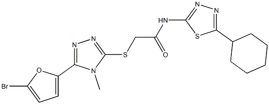 - Synonyms: 2-[[5-(5-bromofuran-2-yl)-4-methyl-1,2,4-triazol-3-yl]sulfanyl]-N-(5-cyclohexyl-1,3,4-thiadiazol-2-yl)acetamide