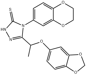 - Synonyms: 3-[1-(1,3-benzodioxol-5-yloxy)ethyl]-4-(2,3-dihydro-1,4-benzodioxin-6-yl)-1H-1,2,4-triazole-5-thione 3H-1,2,4-Triazole-3-thione, 5-[1-(1,3-benzodioxol-5-yloxy)ethyl]-4-(2,3-dihydro-1,4-benzodioxin-6-yl)-2,4-dihydro-