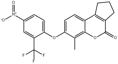 - Synonyms: 6-methyl-7-[4-nitro-2-(trifluoromethyl)phenoxy]-2,3-dihydro-1H-cyclopenta[c]chromen-4-one Cyclopenta[c][1]benzopyran-4(1H)-one, 2,3-dihydro-6-methyl-7-[4-nitro-2-(trifluoromethyl)phenoxy]-