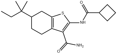 - Synonyms: 2-(cyclobutanecarbonylamino)-6-(2-methylbutan-2-yl)-4,5,6,7-tetrahydro-1-benzothiophene-3-carboxamide Benzo[b]thiophene-3-carboxamide, 2-[(cyclobutylcarbonyl)amino]-6-(1,1-dimethylpropyl)-4,5,6,7-tetrahydro-