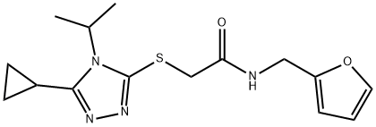 - Synonyms: 2-[(5-cyclopropyl-4-propan-2-yl-1,2,4-triazol-3-yl)sulfanyl]-N-(furan-2-ylmethyl)acetamide Acetamide, 2-[[5-cyclopropyl-4-(1-methylethyl)-4H-1,2,4-triazol-3-yl]thio]-N-(2-furanylmethyl)-