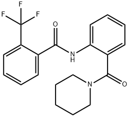 - Synonyms: N-[2-(piperidine-1-carbonyl)phenyl]-2-(trifluoromethyl)benzamide Benzamide, N-[2-(1-piperidinylcarbonyl)phenyl]-2-(trifluoromethyl)-