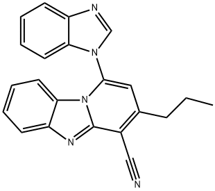- Synonyms: 1-(benzimidazol-1-yl)-3-propylpyrido[1,2-a]benzimidazole-4-carbonitrile Pyrido[1,2-a]benzimidazole-4-carbonitrile, 1-(1H-benzimidazol-1-yl)-3-propyl- 1-(1H-BENZIMIDAZOL-1-YL)-3-PROPYLPYRIDO(1,2-A)BENZIMIDAZOLE-4-CARBONITRILE