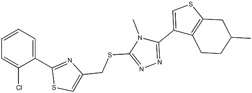 - Synonyms: 2-(2-chlorophenyl)-4-[[4-methyl-5-(6-methyl-4,5,6,7-tetrahydro-1-benzothiophen-3-yl)-1,2,4-triazol-3-yl]sulfanylmethyl]-1,3-thiazole
