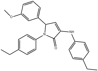 - Synonyms: 4-(4-ethylanilino)-1-(4-ethylphenyl)-2-(3-methoxyphenyl)-2H-pyrrol-5-one 2H-Pyrrol-2-one, 1-(4-ethylphenyl)-3-[(4-ethylphenyl)amino]-1,5-dihydro-5-(3-methoxyphenyl)-
