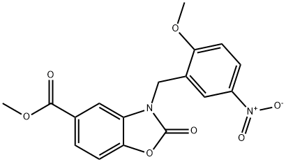 - Synonyms: methyl 3-[(2-methoxy-5-nitrophenyl)methyl]-2-oxo-1,3-benzoxazole-5-carboxylate 5-Benzoxazolecarboxylic acid, 2,3-dihydro-3-[(2-methoxy-5-nitrophenyl)methyl]-2-oxo-, methyl ester
