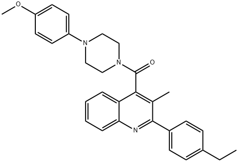 - Synonyms: [2-(4-ethylphenyl)-3-methylquinolin-4-yl]-[4-(4-methoxyphenyl)piperazin-1-yl]methanone Methanone, [2-(4-ethylphenyl)-3-methyl-4-quinolinyl][4-(4-methoxyphenyl)-1-piperazinyl]-