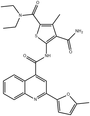 - Synonyms: 2-N,2-N-diethyl-3-methyl-5-[[2-(5-methylfuran-2-yl)quinoline-4-carbonyl]amino]thiophene-2,4-dicarboxamide 2,4-Thiophenedicarboxamide, N2,N2-diethyl-3-methyl-5-[[[2-(5-methyl-2-furanyl)-4-quinolinyl]carbonyl]amino]-