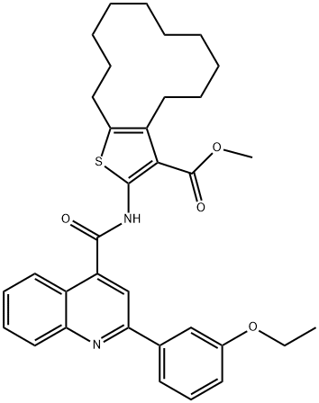 - Synonyms: methyl 2-[[2-(3-ethoxyphenyl)quinoline-4-carbonyl]amino]-4,5,6,7,8,9,10,11,12,13-decahydrocyclododeca[b]thiophene-3-carboxylate Cyclododeca[b]thiophene-3-carboxylic acid, 2-[[[2-(3-ethoxyphenyl)-4-quinolinyl]carbonyl]amino]-4,5,6,7,8,9,10,11,12,13-decahydro-, methyl ester