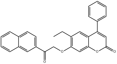 - Synonyms: 6-ethyl-7-(2-naphthalen-2-yl-2-oxoethoxy)-4-phenylchromen-2-one 2H-1-Benzopyran-2-one, 6-ethyl-7-[2-(2-naphthalenyl)-2-oxoethoxy]-4-phenyl- 6-ETHYL-7-(2-(2-NAPHTHYL)-2-OXOETHOXY)-4-PHENYL-2H-CHROMEN-2-ONE