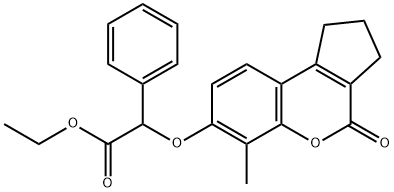 - Synonyms: ethyl 2-[(6-methyl-4-oxo-2,3-dihydro-1H-cyclopenta[c]chromen-7-yl)oxy]-2-phenylacetate Benzeneacetic acid, α-[(1,2,3,4-tetrahydro-6-methyl-4-oxocyclopenta[c][1]benzopyran-7-yl)oxy]-, ethyl ester ET ((6-ME-4-OXO-1,2,3,4-TETRAHYDROCYCLOPENTA(C)CHROMEN-7-YL)OXY)(PHENYL)ACETATE