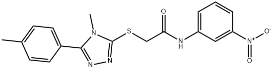 - Synonyms: 2-[[4-methyl-5-(4-methylphenyl)-1,2,4-triazol-3-yl]sulfanyl]-N-(3-nitrophenyl)acetamide Acetamide, 2-[[4-methyl-5-(4-methylphenyl)-4H-1,2,4-triazol-3-yl]thio]-N-(3-nitrophenyl)-