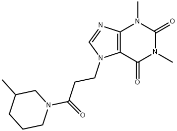- Synonyms: 1,3-dimethyl-7-[3-(3-methylpiperidin-1-yl)-3-oxopropyl]purine-2,6-dione 1H-Purine-2,6-dione, 3,7-dihydro-1,3-dimethyl-7-[3-(3-methyl-1-piperidinyl)-3-oxopropyl]-