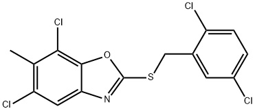 - Synonyms: 5,7-dichloro-2-[(2,5-dichlorophenyl)methylsulfanyl]-6-methyl-1,3-benzoxazole Benzoxazole, 5,7-dichloro-2-[[(2,5-dichlorophenyl)methyl]thio]-6-methyl-