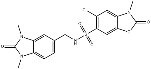 - Synonyms: 5-chloro-N-[(1,3-dimethyl-2-oxobenzimidazol-5-yl)methyl]-3-methyl-2-oxo-1,3-benzoxazole-6-sulfonamide 6-Benzoxazolesulfonamide, 5-chloro-N-[(2,3-dihydro-1,3-dimethyl-2-oxo-1H-benzimidazol-5-yl)methyl]-2,3-dihydro-3-methyl-2-oxo-