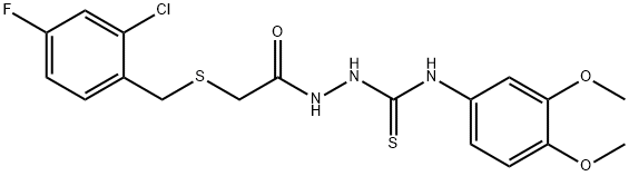 - Synonyms: 1-[[2-[(2-chloro-4-fluorophenyl)methylsulfanyl]acetyl]amino]-3-(3,4-dimethoxyphenyl)thiourea Acetic acid, 2-[[(2-chloro-4-fluorophenyl)methyl]thio]-, 2-[[(3,4-dimethoxyphenyl)amino]thioxomethyl]hydrazide