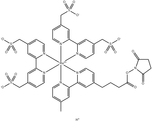 - Synonyms: Ruthenate(2-), bis[[2,2'-bipyridine]-4,4'-dimethanesulfonato(2-)-κN1,κN1'](2,5-dioxo-1-pyrrolidinyl 4'-methyl[2,2'-bipyridine]-4-butanoate-κN1,κN1')-, hydrogen (1:2), (OC-6-31)-