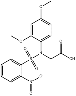 - Synonyms: [(2,4-Dimethoxy-phenyl)-(2-nitro-benzenesulfonyl)-amino]-acetic acid 2-[(2,4-dimethoxyphenyl)-(2-nitrophenyl)sulfonylamino]acetic acid 2-[(2,4-dimethoxyphenyl)-(2-nitrophenyl)sulfonyl-amino]acetic acid 2-[(2,4-dimethoxyphenyl)-(2-nitrophenyl)sulfonyl-amino]ethanoic acid N-(2,4-dimethoxyphenyl)-N-[(2-nitrophenyl)sulfonyl]glycine Glycine, N-(2,4-dimethoxyphenyl)-N-[(2-nitrophenyl)sulfonyl]-