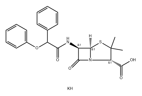 - Product Name:4-Thia-1-azabicyclo[3.2.0]heptane-2-carboxylicacid, 3,3-dimethyl-7-oxo-6-[(2-phenoxy-2-phenylacetyl)amino]-, potassium salt(1:1), (2S,5R,6R)-