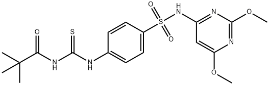 - Synonyms: N-{[(4-{[(2,6-dimethoxy-4-pyrimidinyl)amino]sulfonyl}phenyl)amino]carbonothioyl}-2,2-dimethylpropanamide Propanamide, N-[[[4-[[(2,6-dimethoxy-4-pyrimidinyl)amino]sulfonyl]phenyl]amino]thioxomethyl]-2,2-dimethyl-