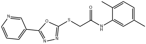 - Synonyms: N-(2,5-dimethylphenyl)-2-((5-(pyridin-3-yl)-1,3,4-oxadiazol-2-yl)thio)acetamide Acetamide, N-(2,5-dimethylphenyl)-2-[[5-(3-pyridinyl)-1,3,4-oxadiazol-2-yl]thio]-