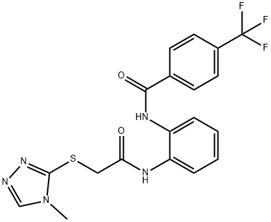 - Synonyms: N-[2-({[(4-methyl-4H-1,2,4-triazol-3-yl)sulfanyl]acetyl}amino)phenyl]-4-(trifluoromethyl)benzamide Benzamide, N-[2-[[2-[(4-methyl-4H-1,2,4-triazol-3-yl)thio]acetyl]amino]phenyl]-4-(trifluoromethyl)-