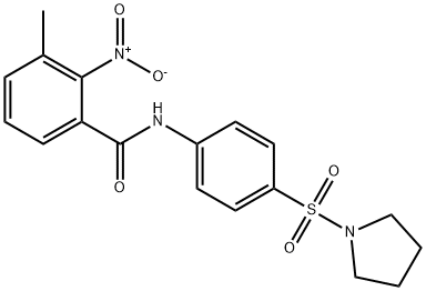 - Synonyms: 3-methyl-2-nitro-N-(4-pyrrolidin-1-ylsulfonylphenyl)benzamide Benzamide, 3-methyl-2-nitro-N-[4-(1-pyrrolidinylsulfonyl)phenyl]-