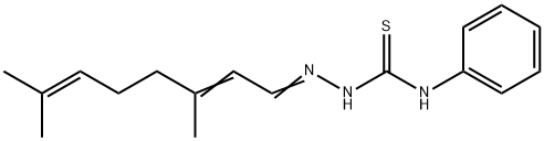 - Synonyms: 3,7-dimethyl-2,6-octadienal N-phenylthiosemicarbazone (2E)-2-[(2E)-3,7-dimethylocta-2,6-dien-1-ylidene]-N-phenylhydrazinecarbothioamide Hydrazinecarbothioamide, 2-(3,7-dimethyl-2,6-octadien-1-ylidene)-N-phenyl-