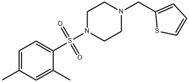 - Synonyms: 1-(2,4-dimethylphenyl)sulfonyl-4-(thiophen-2-ylmethyl)piperazine Piperazine, 1-[(2,4-dimethylphenyl)sulfonyl]-4-(2-thienylmethyl)-