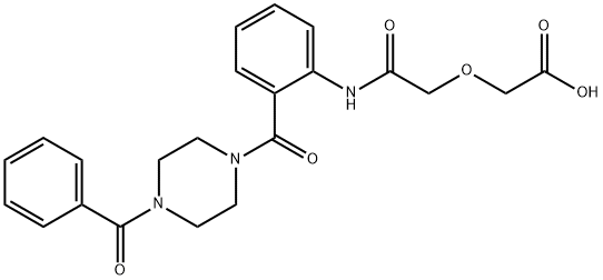 - Synonyms: (2-{2-[(4-benzoyl-1-piperazinyl)carbonyl]anilino}-2-oxoethoxy)acetic acid Acetic acid, 2-[2-[[2-[(4-benzoyl-1-piperazinyl)carbonyl]phenyl]amino]-2-oxoethoxy]-