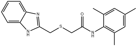 - Synonyms: 2-[(1H-benzimidazol-2-ylmethyl)sulfanyl]-N-mesitylacetamide Acetamide, 2-[(1H-benzimidazol-2-ylmethyl)thio]-N-(2,4,6-trimethylphenyl)-