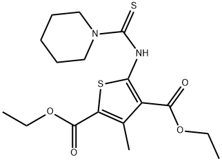 - Synonyms: diethyl 3-methyl-5-[(1-piperidinylcarbothioyl)amino]-2,4-thiophenedicarboxylate 2,4-Thiophenedicarboxylic acid, 3-methyl-5-[(1-piperidinylthioxomethyl)amino]-, 2,4-diethyl ester