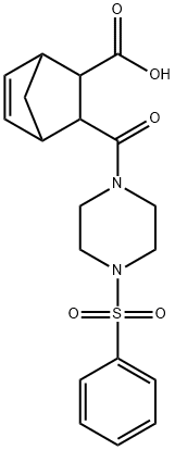 - Synonyms: 3-(4-(phenylsulfonyl)piperazine-1-carbonyl)bicyclo[2.2.1]hept-5-ene-2-carboxylic acid Bicyclo[2.2.1]hept-5-ene-2-carboxylic acid, 3-[[4-(phenylsulfonyl)-1-piperazinyl]carbonyl]-