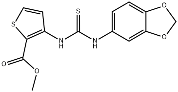 - Synonyms: methyl 3-(3-(benzo[d][1,3]dioxol-5-yl)thioureido)thiophene-2-carboxylate 2-Thiophenecarboxylic acid, 3-[[(1,3-benzodioxol-5-ylamino)thioxomethyl]amino]-, methyl ester