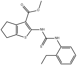 - Synonyms: methyl 2-(3-(2-ethylphenyl)thioureido)-5,6-dihydro-4H-cyclopenta[b]thiophene-3-carboxylate 4H-Cyclopenta[b]thiophene-3-carboxylic acid, 2-[[[(2-ethylphenyl)amino]thioxomethyl]amino]-5,6-dihydro-, methyl ester