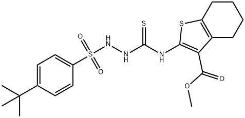 - Synonyms: methyl 2-(2-((4-(tert-butyl)phenyl)sulfonyl)hydrazinecarbothioamido)-4,5,6,7-tetrahydrobenzo[b]thiophene-3-carboxylate Benzo[b]thiophene-3-carboxylic acid, 2-[[[2-[[4-(1,1-dimethylethyl)phenyl]sulfonyl]hydrazinyl]thioxomethyl]amino]-4,5,6,7-tetrahydro-, methyl ester