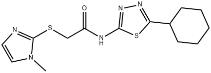 - Synonyms: N-(5-cyclohexyl-1,3,4-thiadiazol-2-yl)-2-(1-methylimidazol-2-yl)sulfanylacetamide Acetamide, N-(5-cyclohexyl-1,3,4-thiadiazol-2-yl)-2-[(1-methyl-1H-imidazol-2-yl)thio]-