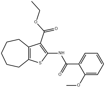 - Synonyms: ethyl 2-[(2-methoxybenzoyl)amino]-5,6,7,8-tetrahydro-4H-cyclohepta[b]thiophene-3-carboxylate 4H-Cyclohepta[b]thiophene-3-carboxylic acid, 5,6,7,8-tetrahydro-2-[(2-methoxybenzoyl)amino]-, ethyl ester