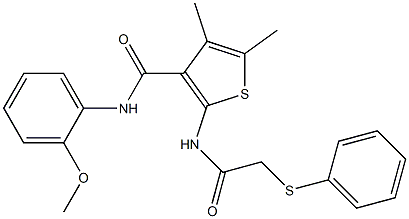 - Synonyms: N-(2-methoxyphenyl)-4,5-dimethyl-2-[(2-phenylsulfanylacetyl)amino]thiophene-3-carboxamide