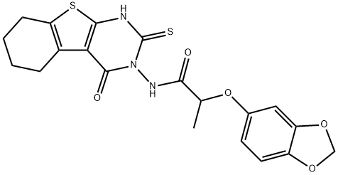 - Synonyms: 2-(1,3-benzodioxol-5-yloxy)-N-(4-oxo-2-sulfanylidene-5,6,7,8-tetrahydro-1H-[1]benzothiolo[2,3-d]pyrimidin-3-yl)propanamide Propanamide, 2-(1,3-benzodioxol-5-yloxy)-N-(1,4,5,6,7,8-hexahydro-4-oxo-2-thioxo[1]benzothieno[2,3-d]pyrimidin-3(2H)-yl)-