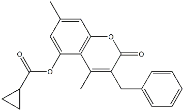 - Synonyms: (3-benzyl-4,7-dimethyl-2-oxochromen-5-yl) cyclopropanecarboxylate