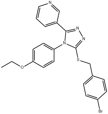 - Synonyms: 3-[5-[(4-bromophenyl)methylsulfanyl]-4-(4-ethoxyphenyl)-1,2,4-triazol-3-yl]pyridine Pyridine, 3-[5-[[(4-bromophenyl)methyl]thio]-4-(4-ethoxyphenyl)-4H-1,2,4-triazol-3-yl]- 3-(5-((4-BROMOBENZYL)SULFANYL)-4-(4-ETHOXYPHENYL)-4H-1,2,4-TRIAZOL-3-YL)PYRIDINE