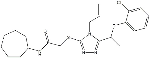 - Product Name:2-[[5-[1-(2-chlorophenoxy)ethyl]-4-prop-2-enyl-1,2,4-triazol-3-yl]sulfanyl]-N-cycloheptylacetamide