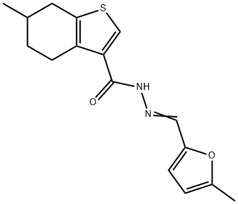 - Synonyms: 6-methyl-N-[(E)-(5-methylfuran-2-yl)methylideneamino]-4,5,6,7-tetrahydro-1-benzothiophene-3-carboxamide Benzo[b]thiophene-3-carboxylic acid, 4,5,6,7-tetrahydro-6-methyl-, 2-[(5-methyl-2-furanyl)methylene]hydrazide