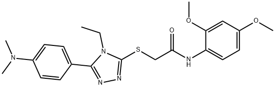 - Synonyms: N-(2,4-dimethoxyphenyl)-2-[[5-[4-(dimethylamino)phenyl]-4-ethyl-1,2,4-triazol-3-yl]sulfanyl]acetamide Acetamide, N-(2,4-dimethoxyphenyl)-2-[[5-[4-(dimethylamino)phenyl]-4-ethyl-4H-1,2,4-triazol-3-yl]thio]-