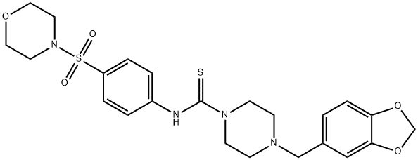- Synonyms: 4-(1,3-benzodioxol-5-ylmethyl)-N-(4-morpholin-4-ylsulfonylphenyl)piperazine-1-carbothioamide 1-Piperazinecarbothioamide, 4-(1,3-benzodioxol-5-ylmethyl)-N-[4-(4-morpholinylsulfonyl)phenyl]-