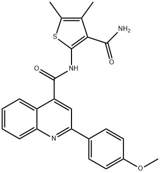 - Synonyms: N-(3-carbamoyl-4,5-dimethylthiophen-2-yl)-2-(4-methoxyphenyl)quinoline-4-carboxamide 4-Quinolinecarboxamide, N-[3-(aminocarbonyl)-4,5-dimethyl-2-thienyl]-2-(4-methoxyphenyl)-