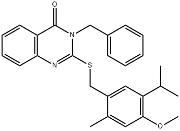 - Synonyms: 3-benzyl-2-[(4-methoxy-2-methyl-5-propan-2-ylphenyl)methylsulfanyl]quinazolin-4-one 4(3H)-Quinazolinone, 2-[[[4-methoxy-2-methyl-5-(1-methylethyl)phenyl]methyl]thio]-3-(phenylmethyl)-